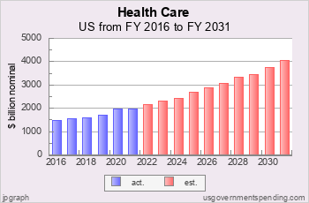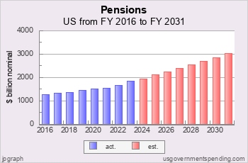 Account level spending estimates through FY 2031 come from the Outlays table in the Public Budget Database and were updated on usgovernmentspending.com on April 4, 2026.
