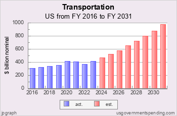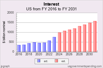 See BAR CHARTS of spending, debt.