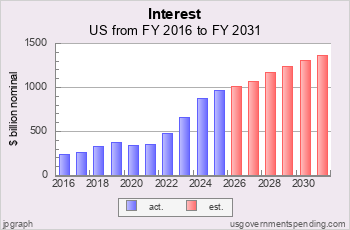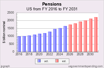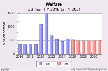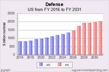Account level spending estimates through FY 2031 come from the Outlays table in the Public Budget Database and were updated on usgovernmentspending.com on April 4, 2026.